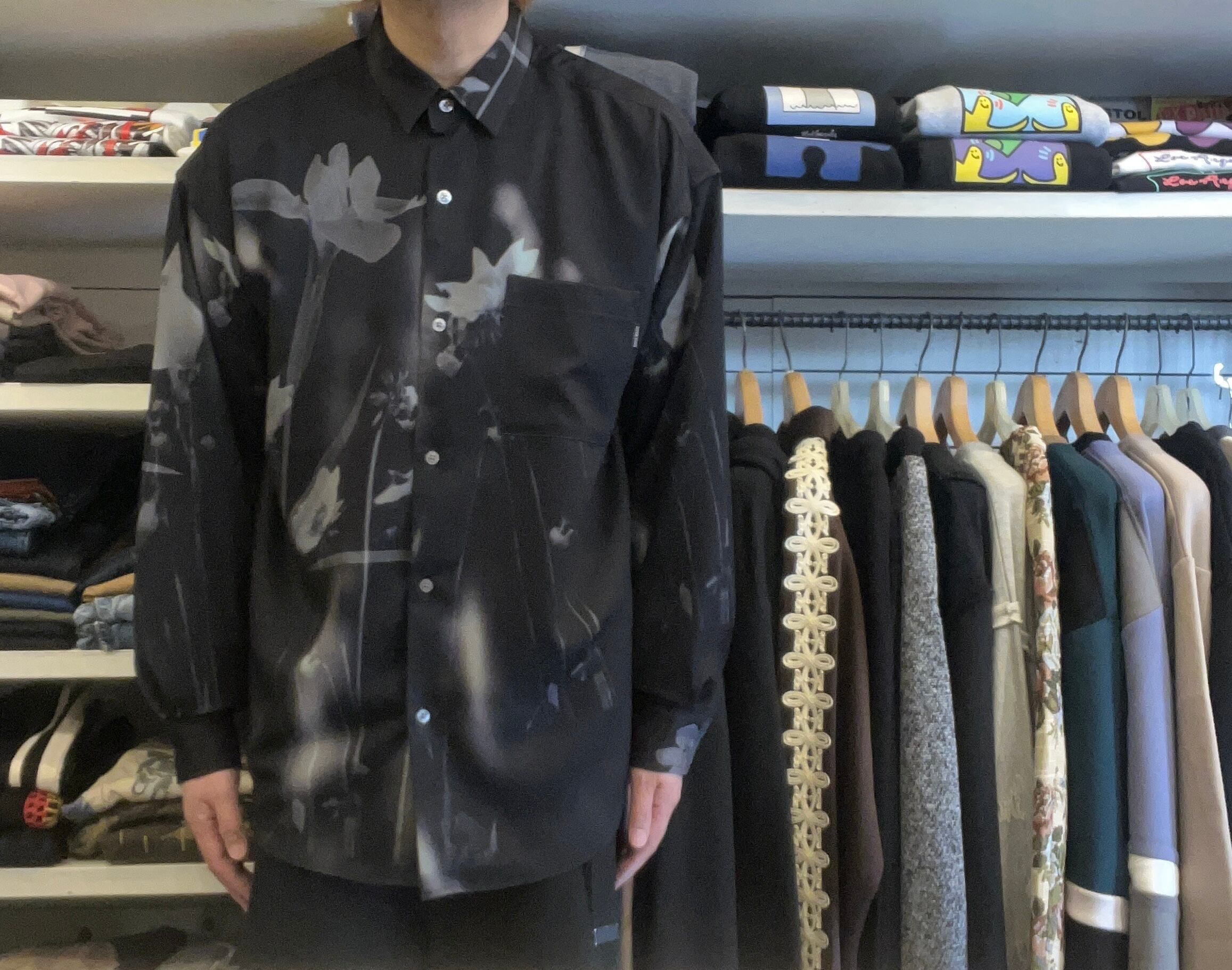 ナチュラルストレッチ 総柄シャツ