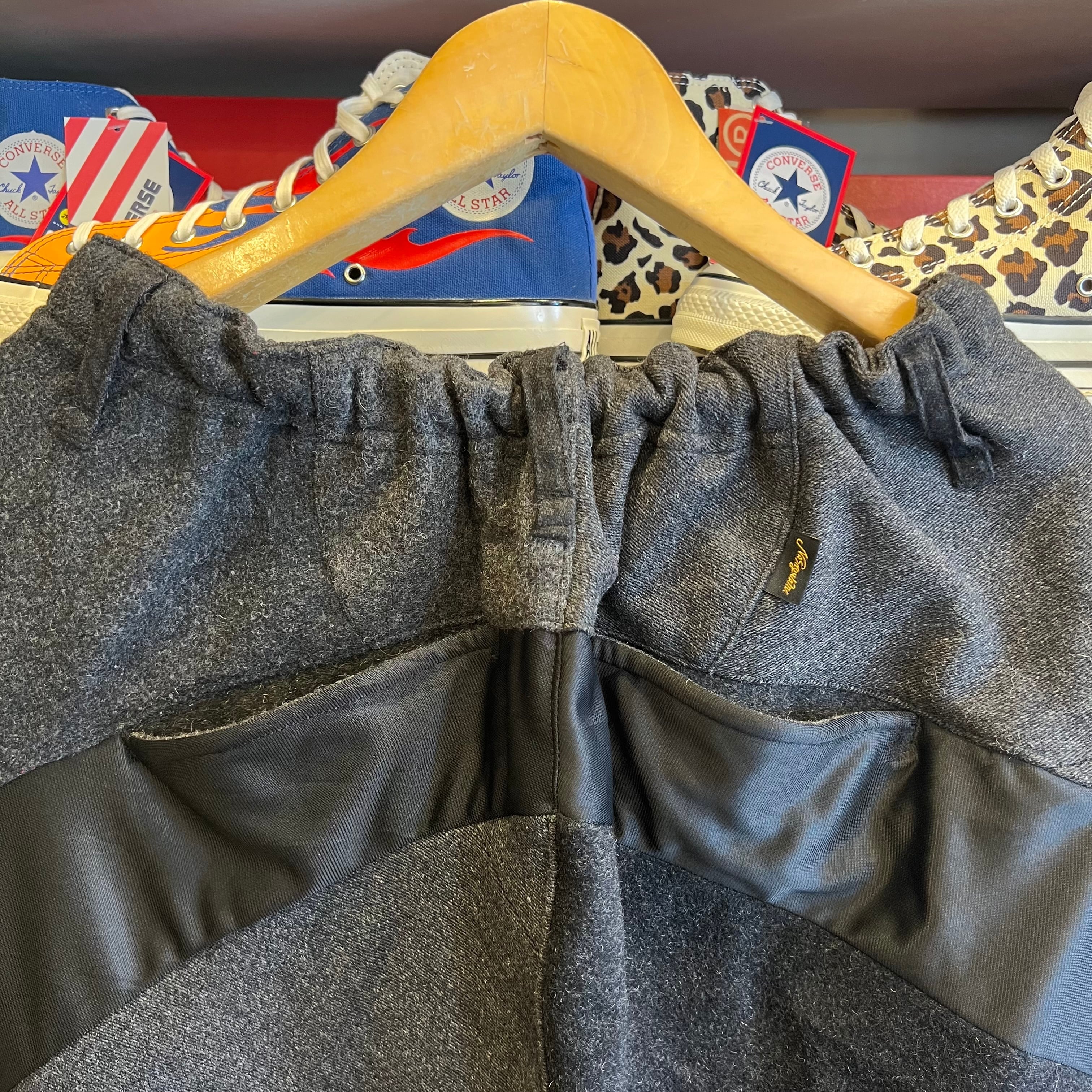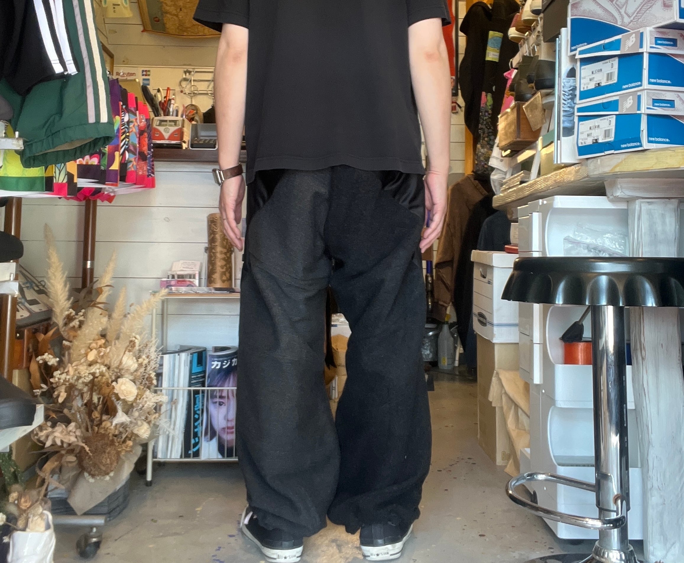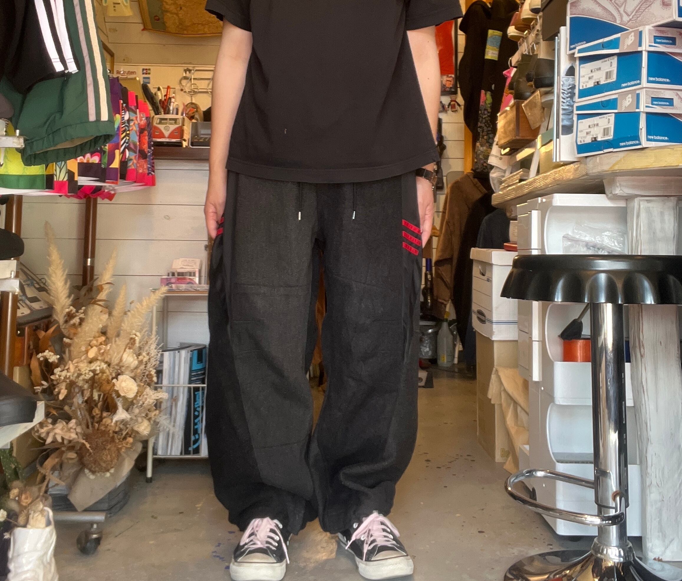 2000年頃のクラブスタイルを彷彿とさせる、ミリタリー×ジャージのリメイクパンツ。