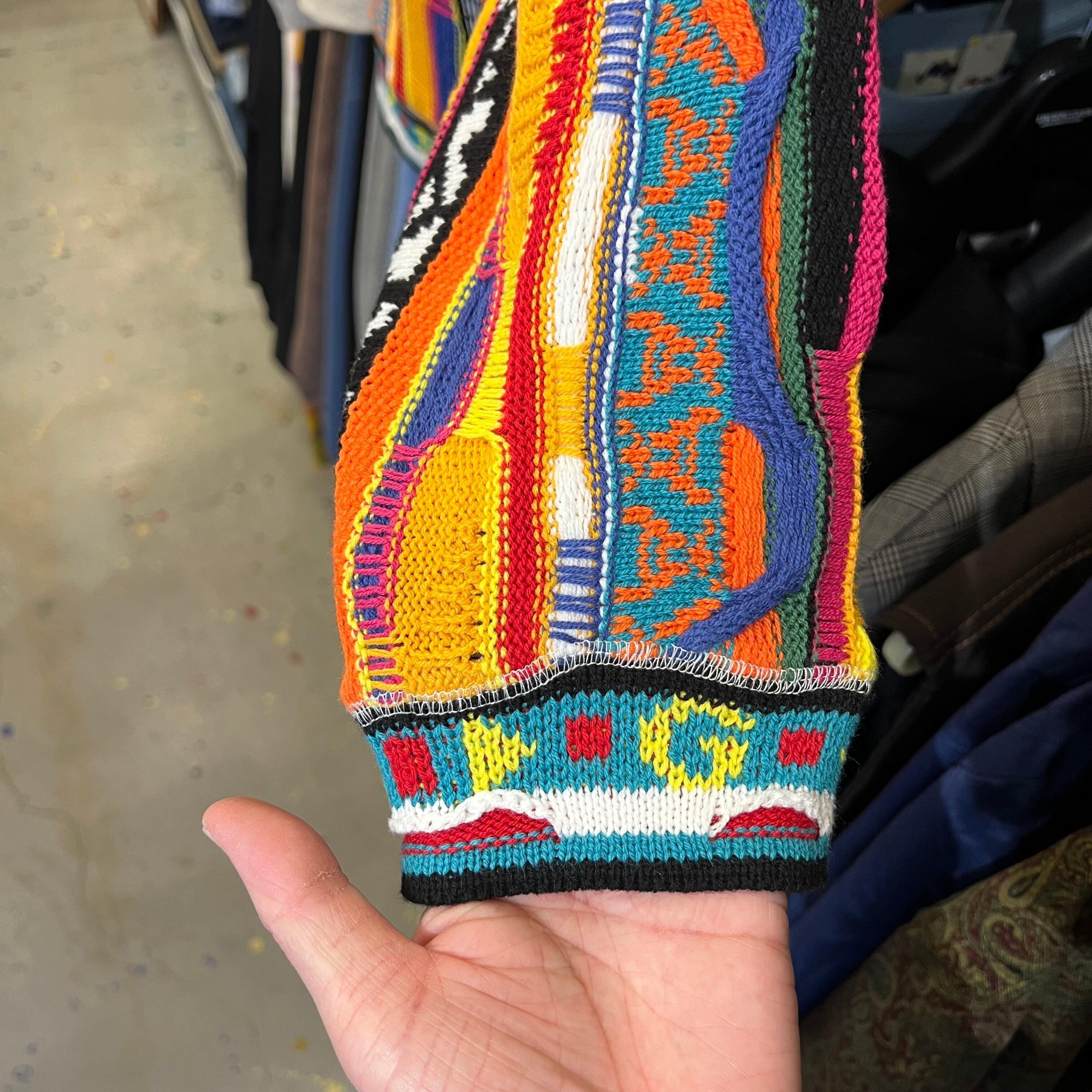 インパクトのあるニット部分は、複数の糸を多色使いで編み立てたオリジナルの3Dジャガードニットを採用。