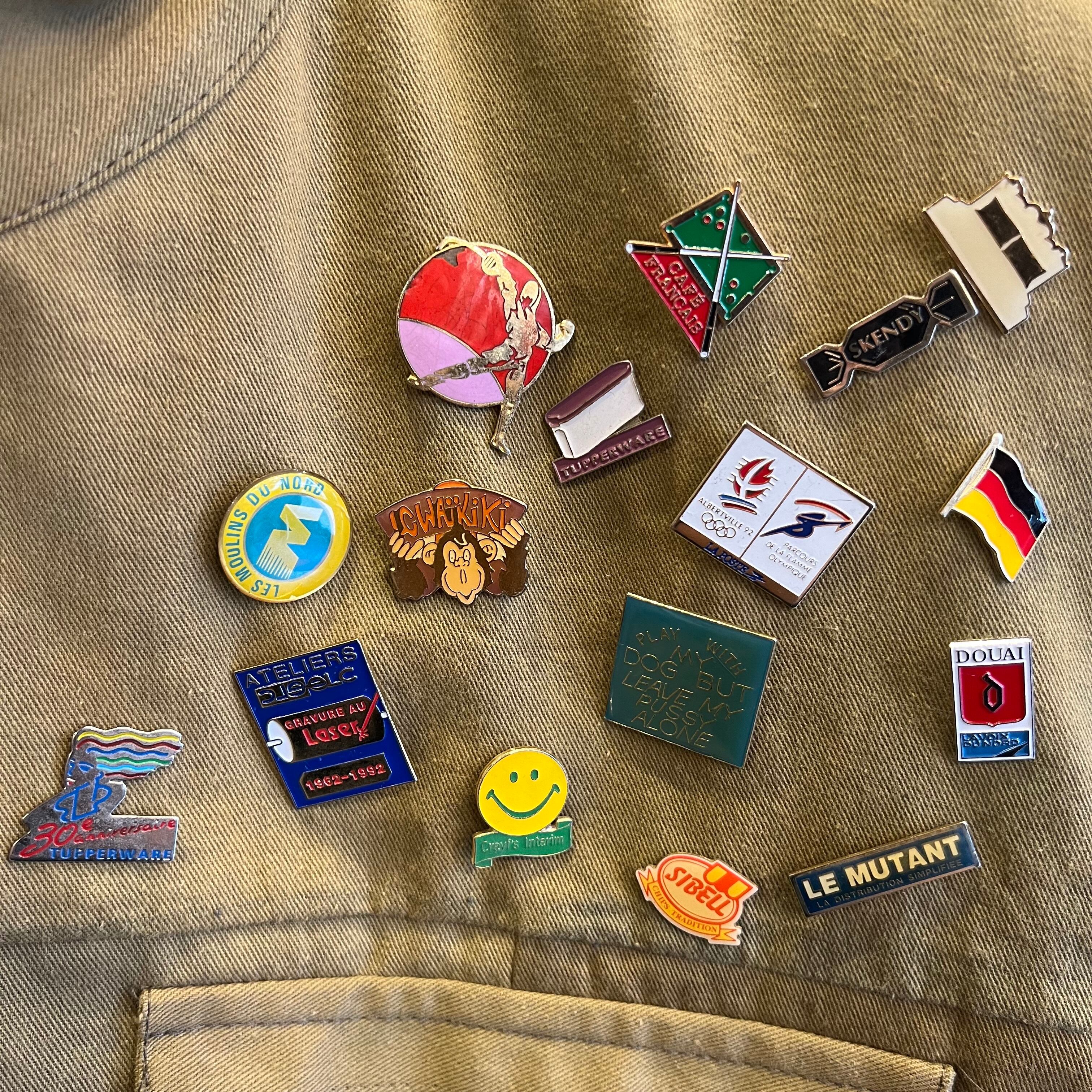 さらに左胸にはこれだけでも価値のある年代物のヴィンテージピンが多数付属しており、デザイン面での最大の特徴になっています。