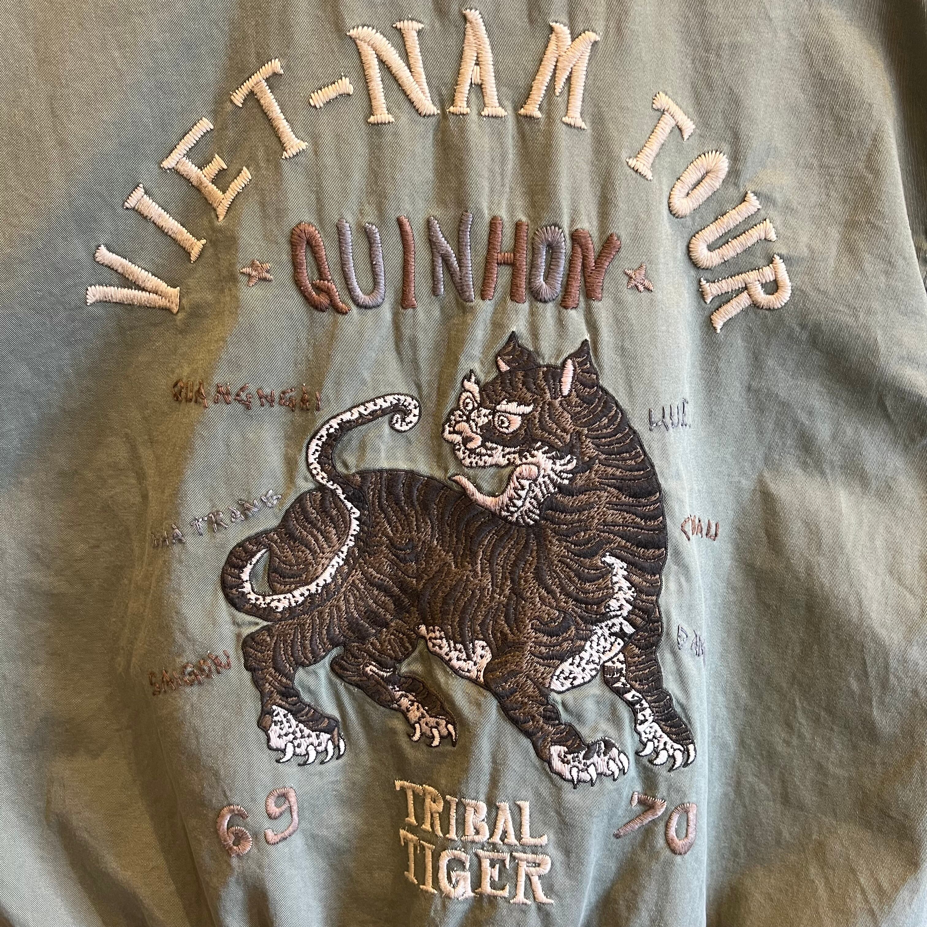 今作はヴィンテージをイメージしながらオリジナルグラフィックのスーベニア刺繍を施したベトジャンです。