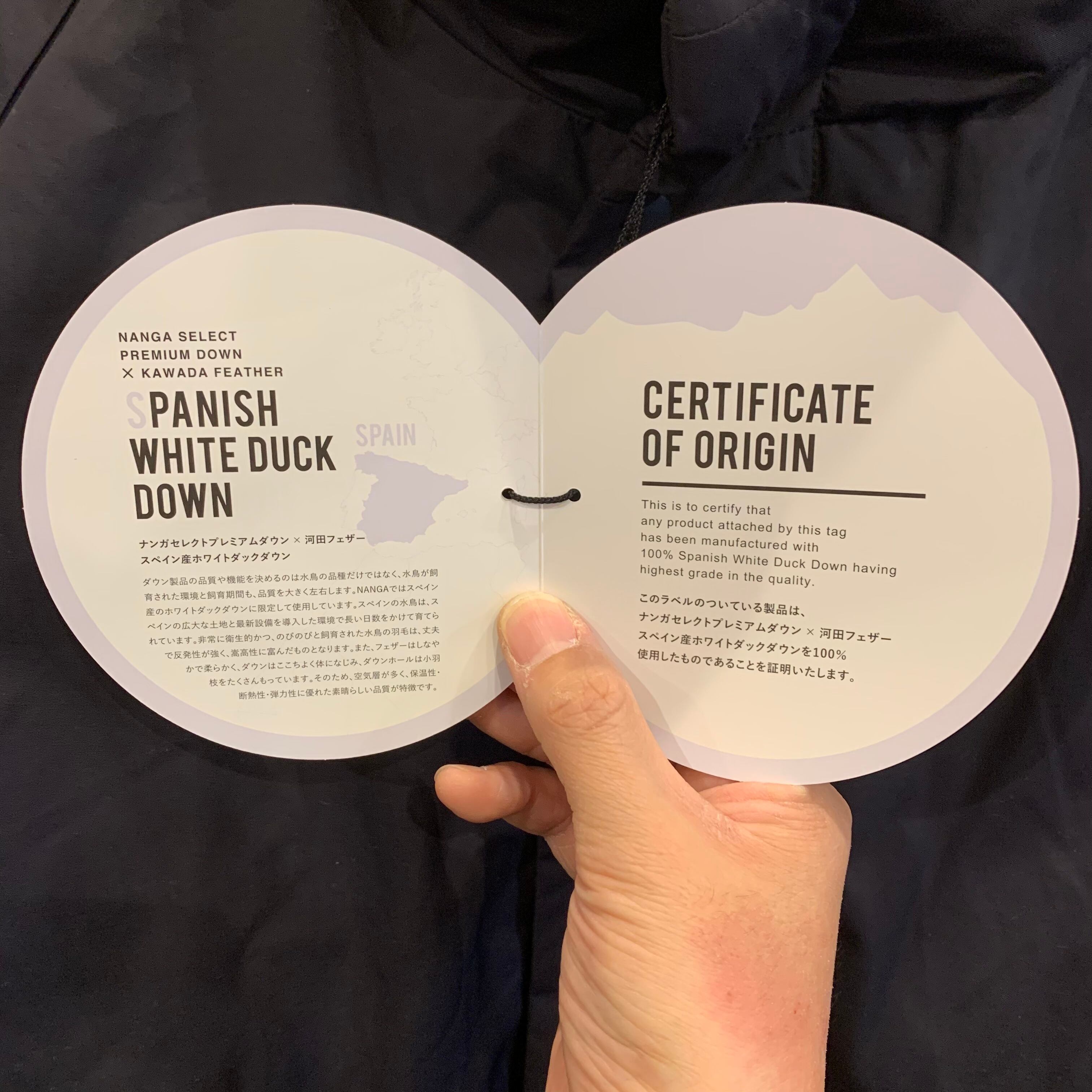詰め物:ダウン90% フェザー10%(NANGA,河田フェザー監修)