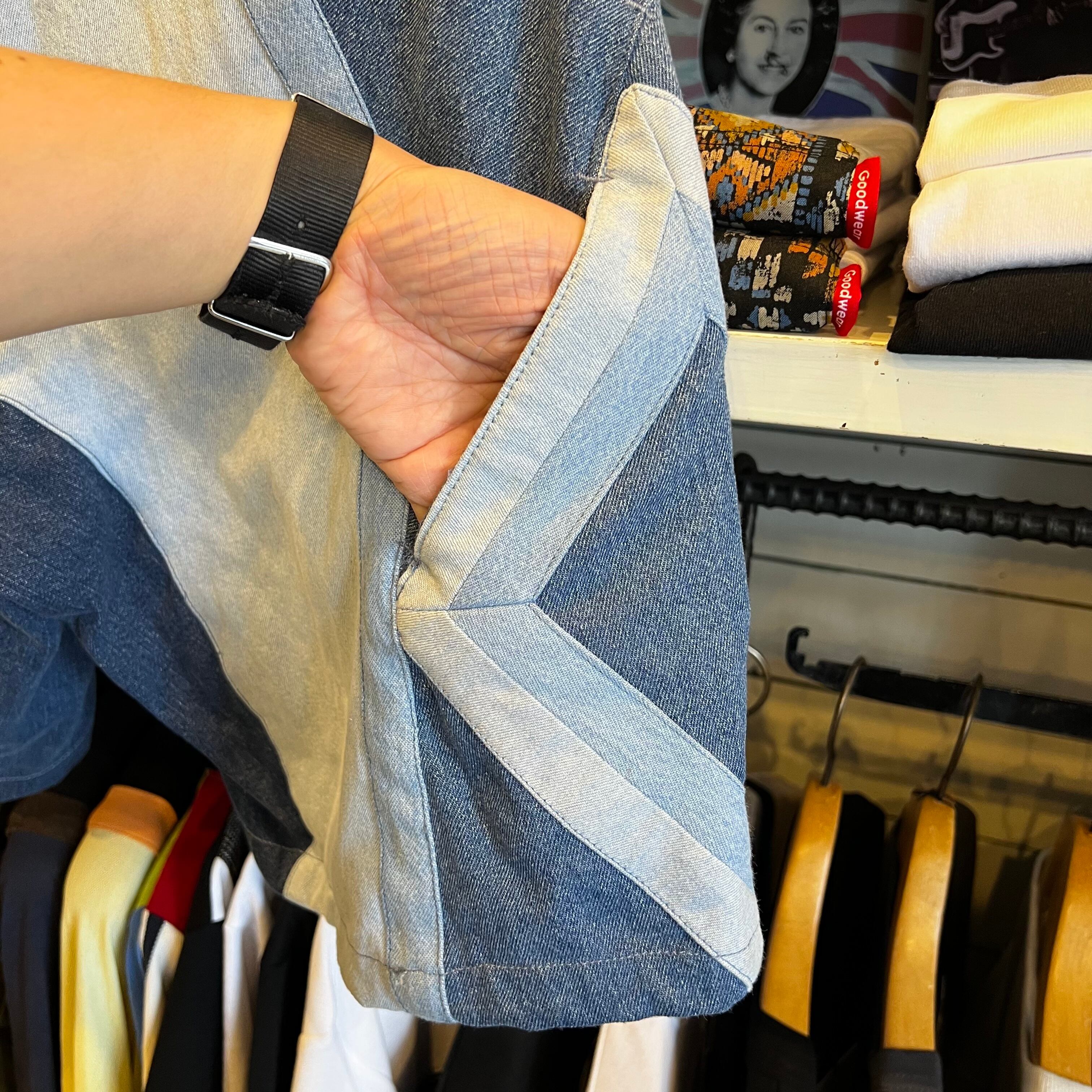 USEDのデニムを解体し、パッチワーク。