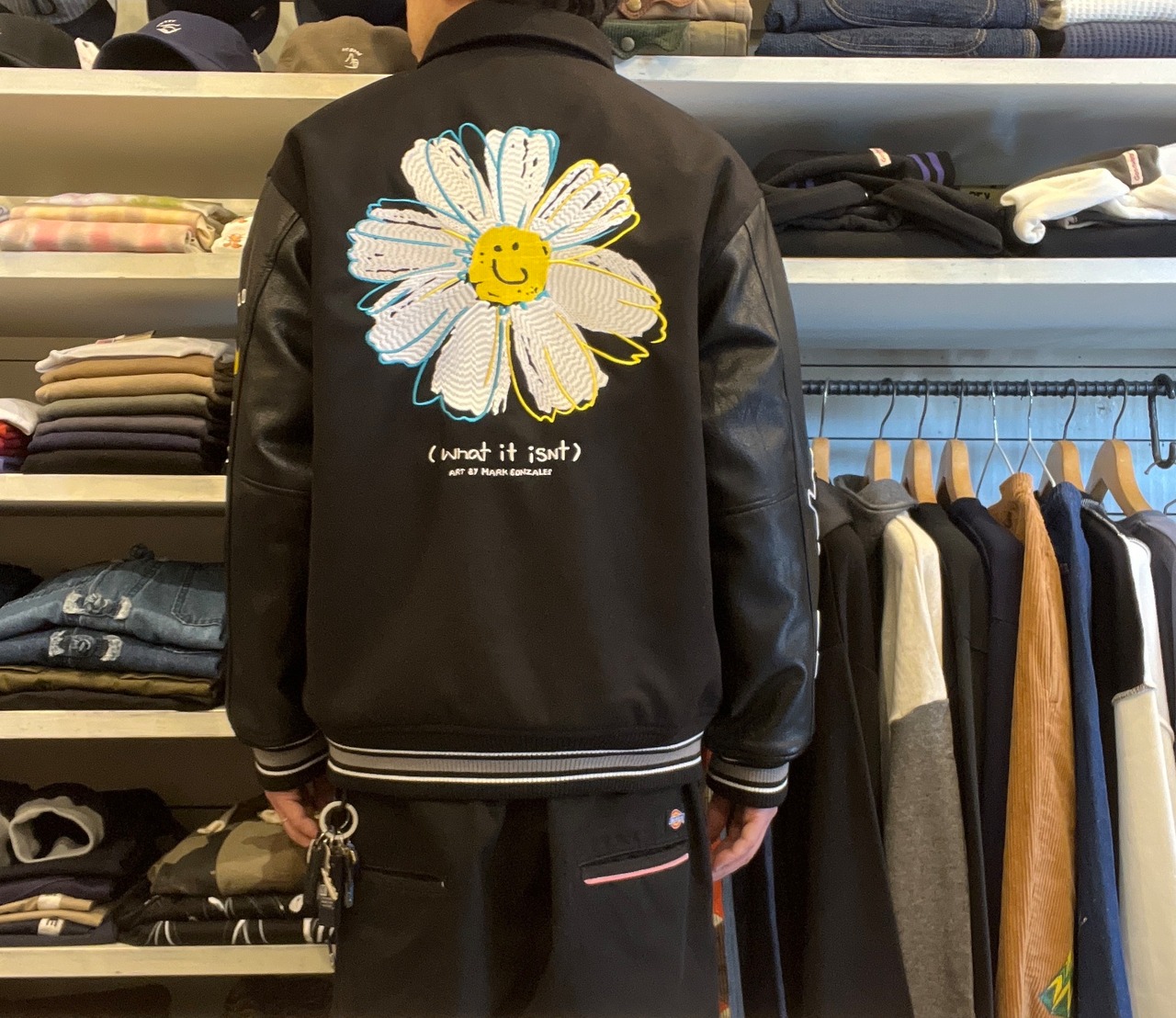 (What it isNT)by Mark Gonzales TR-MELTON × PU-LEATHER スタジアム ジャケット