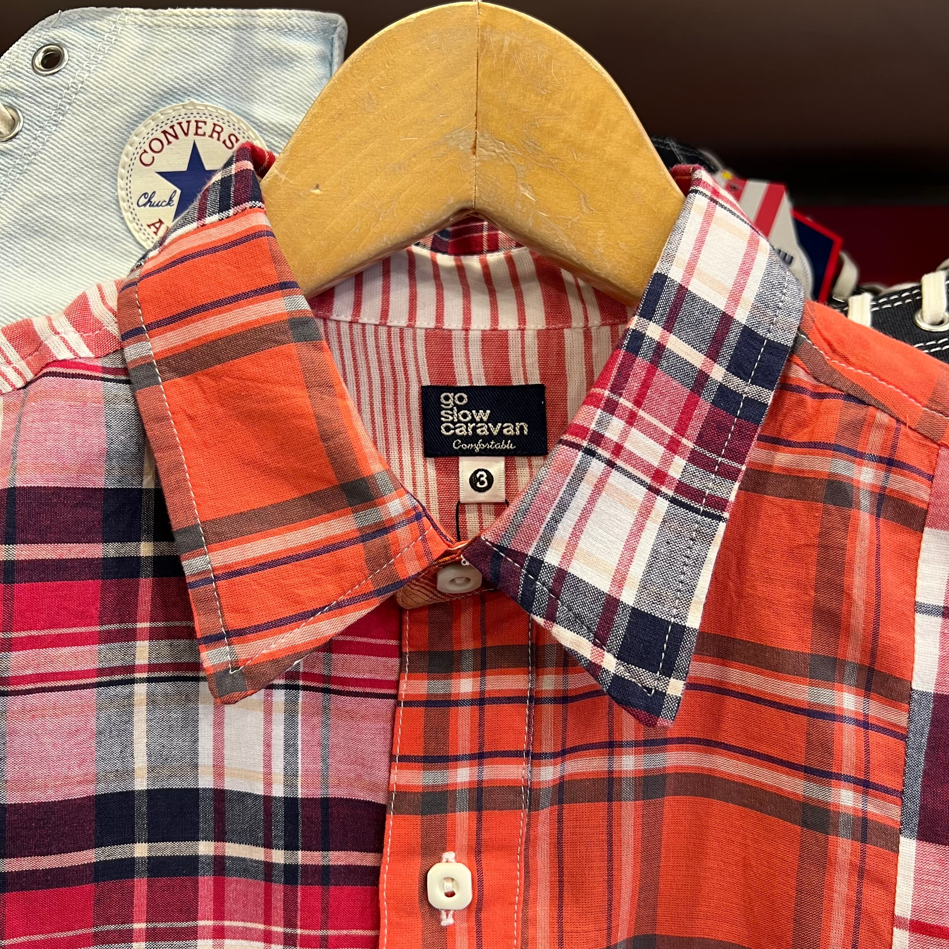go slow caravan ランダムパッチワーク マドラスチェック シャツ