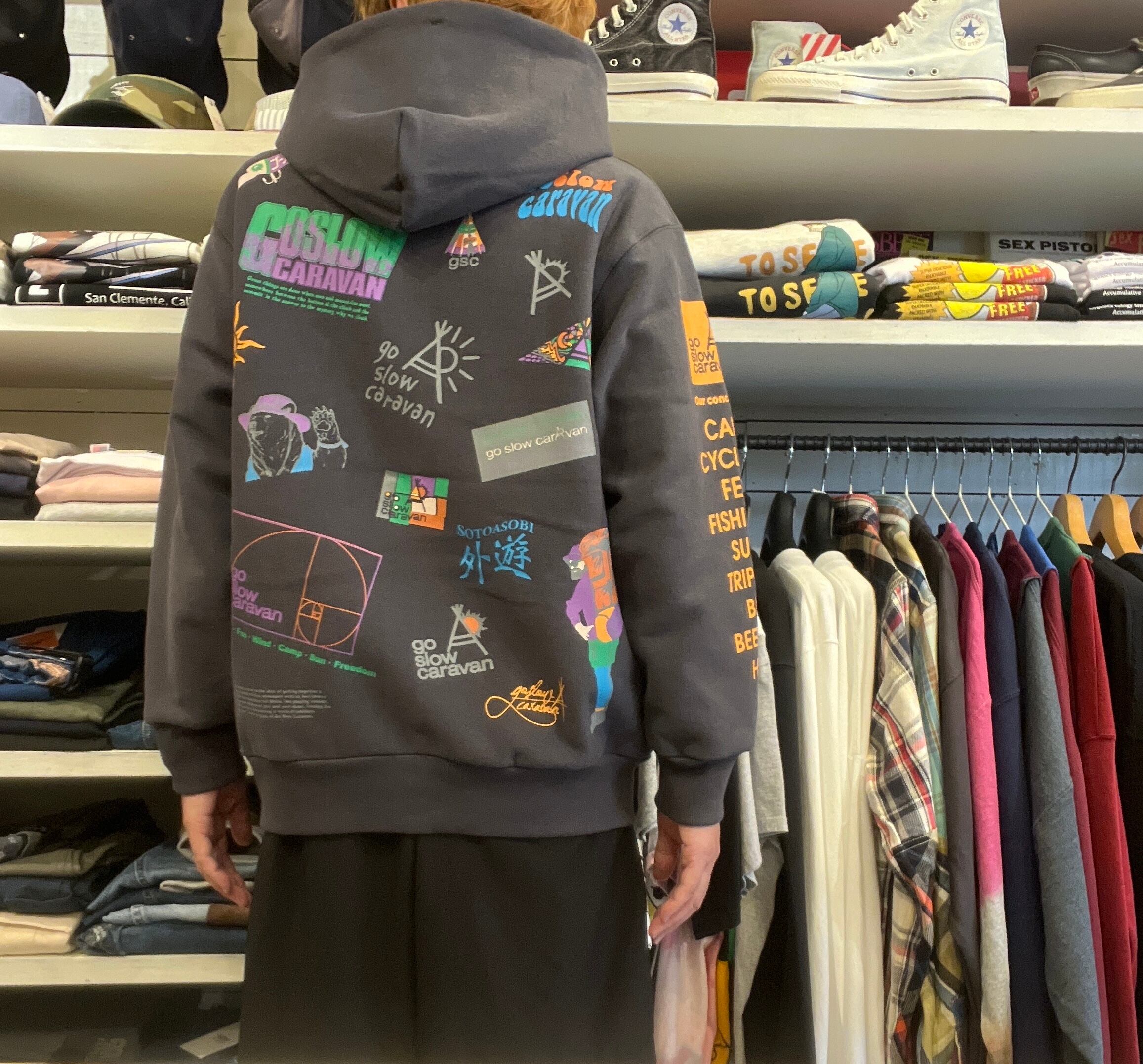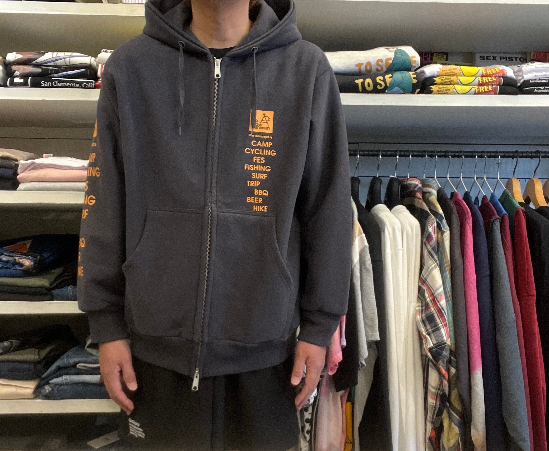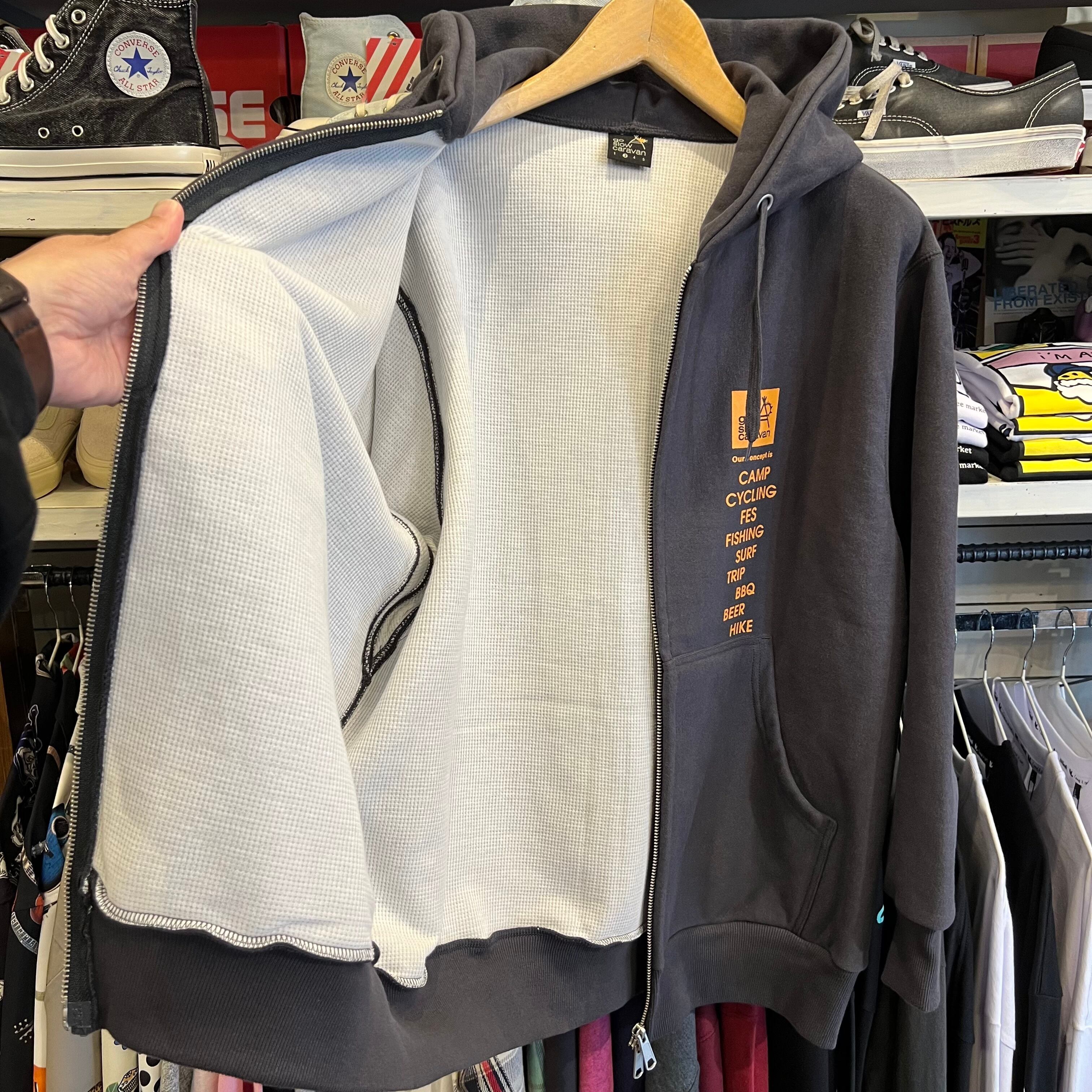 go slow caravan ヘビースウェット × ワッフル プリント ZIPパーカー